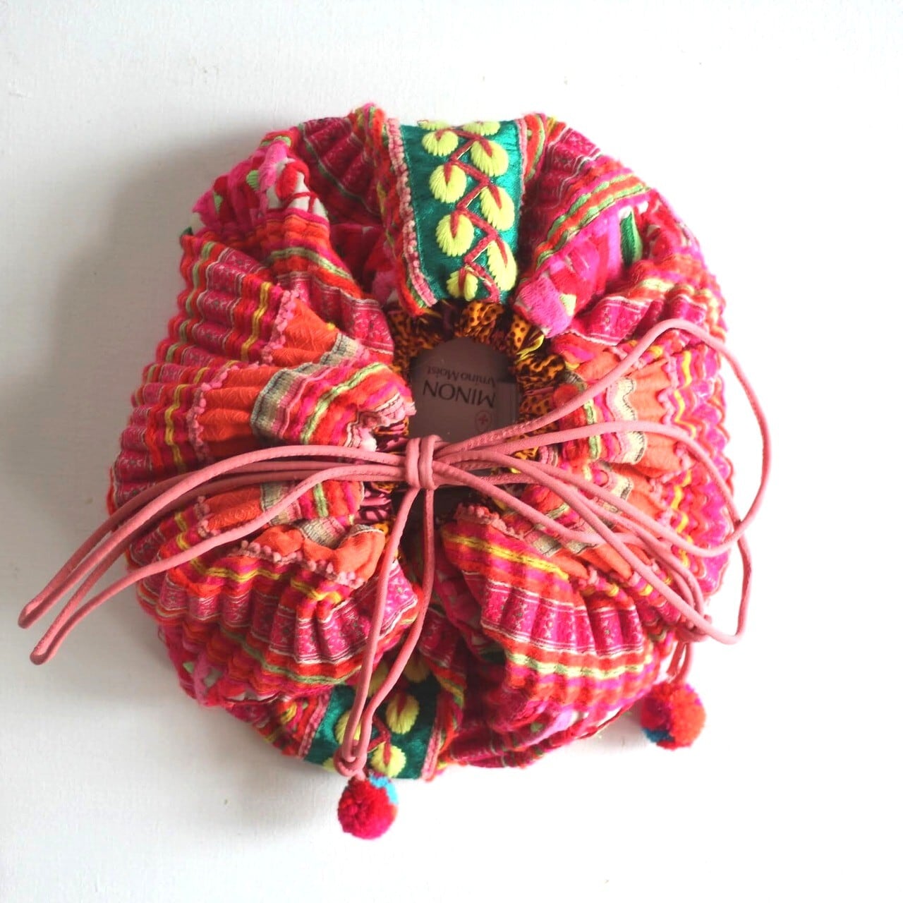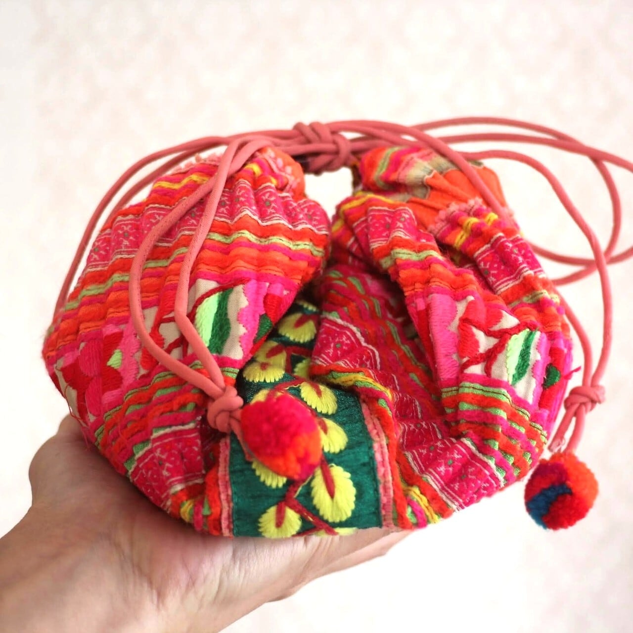 モン族の刺繍古布を巾着ポーチにしました。